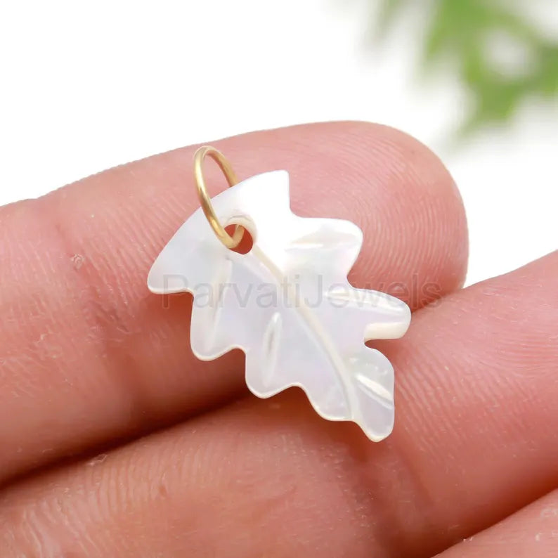 Natural Mother of Pearl Charm, 18k Solid Gold Charm, Mother of Pearl Leaf Charm, Pearl Charm Necklace, Charm Pendant, Handmade Gold Charm