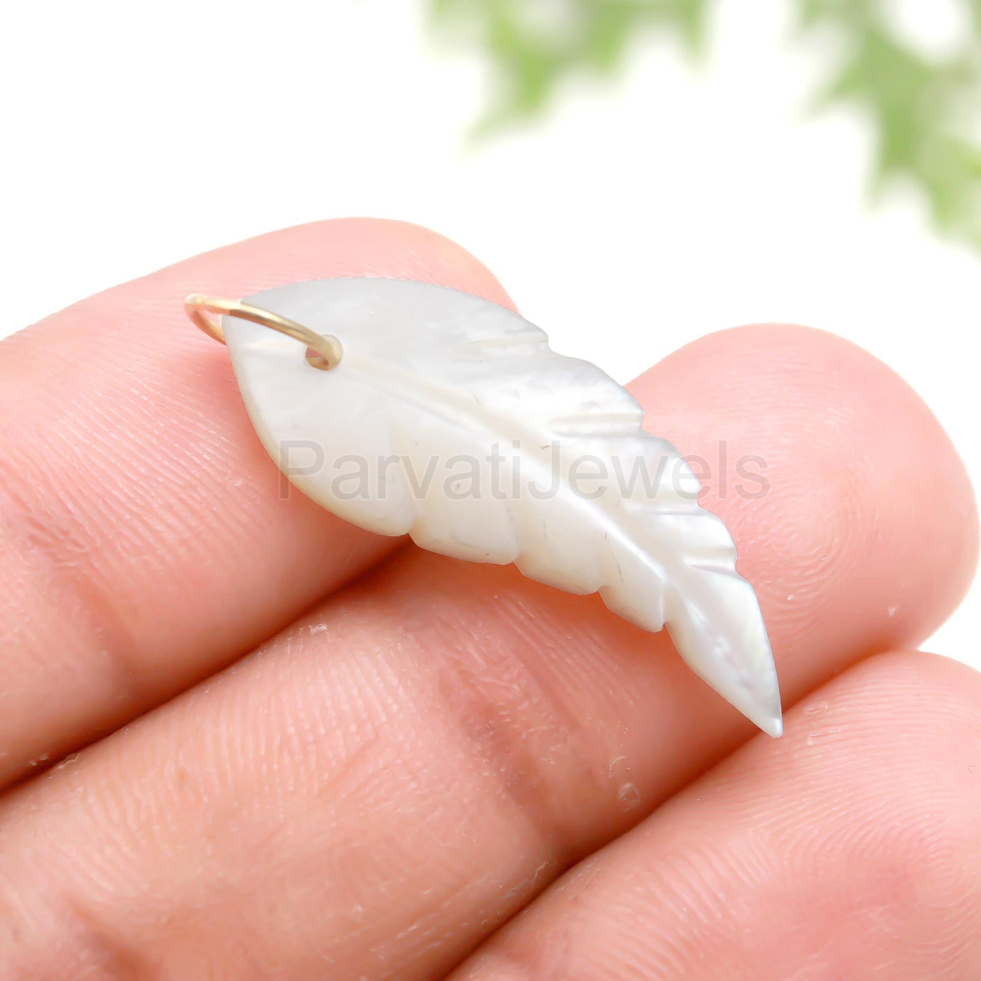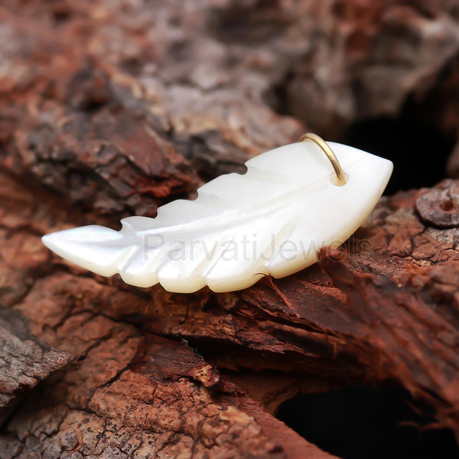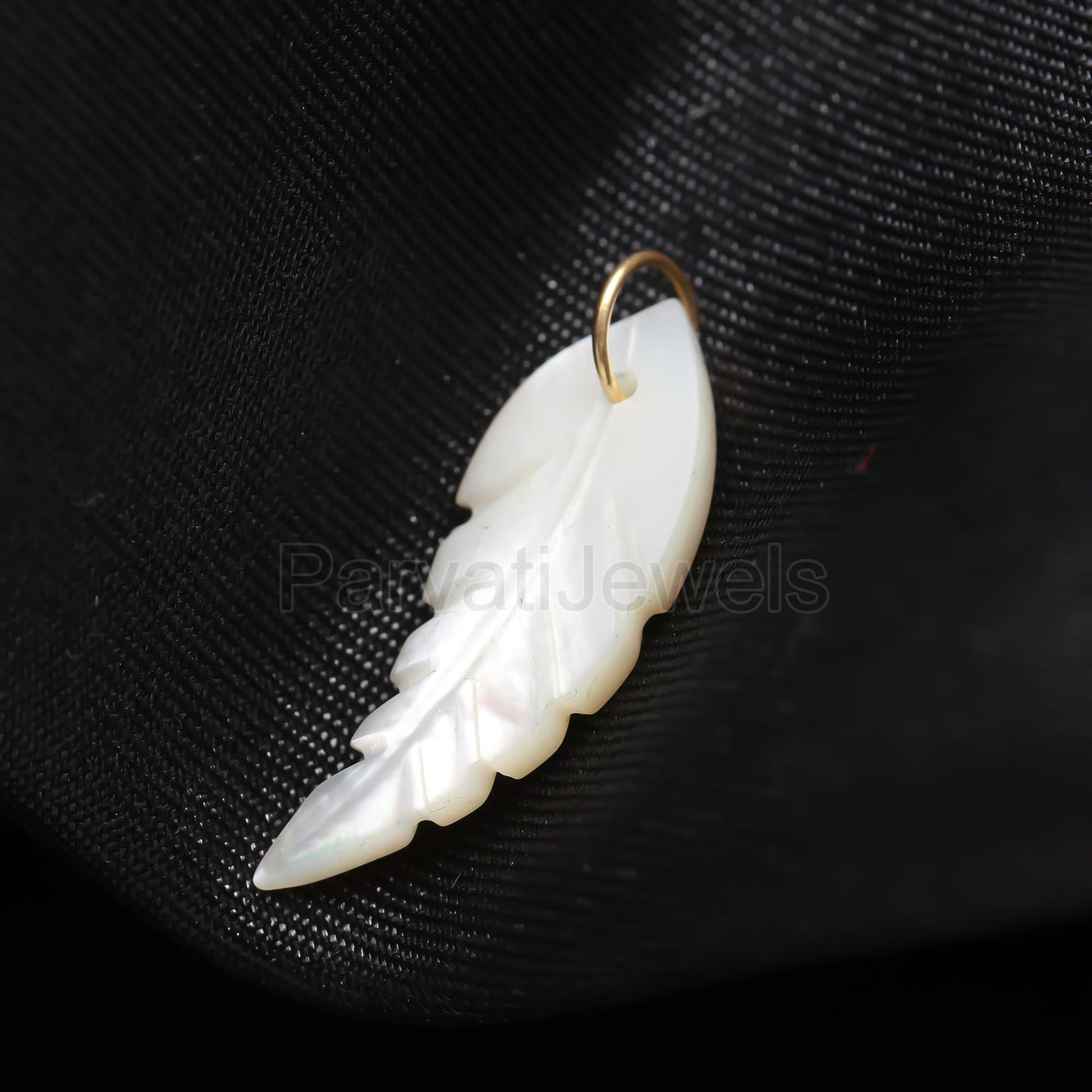 Natural Mother of Pearl Leaf Charm, 18k Solid Gold Charm, Mother of Pearl Wing Gold Charm, Gold Charm Necklace, Carving Wing Charm, Pearl Charm Necklace, Charm Pendant, Handmade Gold Charm, Gift For Her Charm