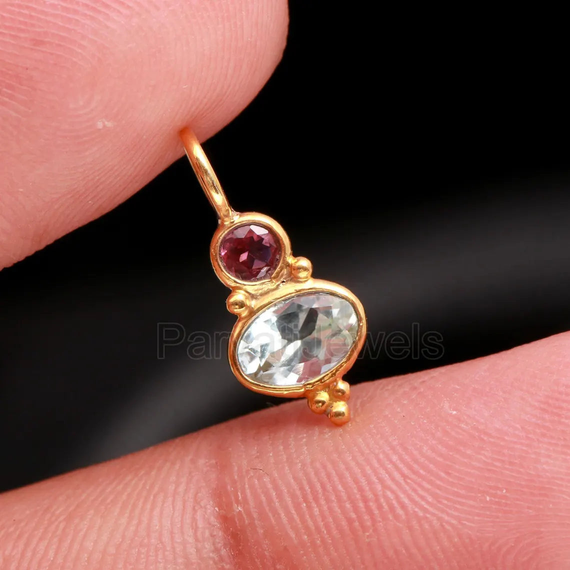 Natural Blue Topaz With Tourmaline Charm, 18k Solid Gold Charm, Gold Charm, Tourmaline Pendant, Topaz Charm Pendant, Handmade Gold Charm,