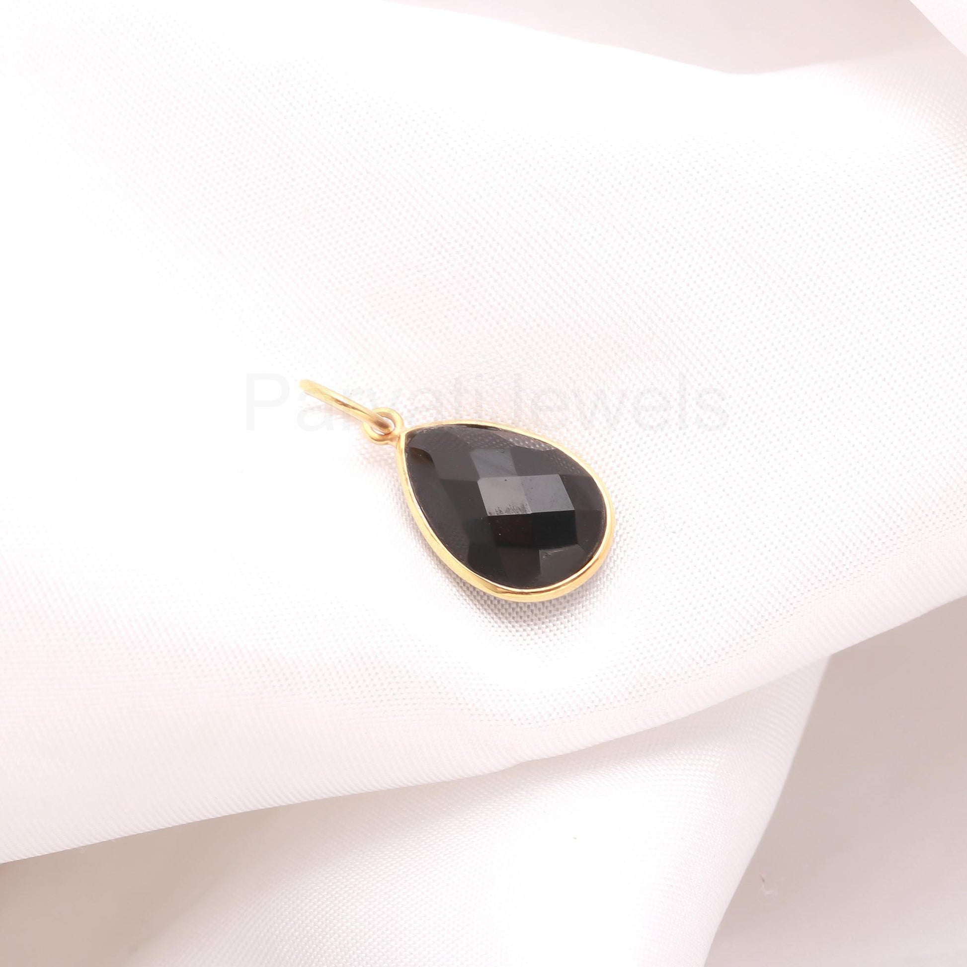 Natural Pear Shaped Black Onyx Charm, Black Onyx Gemstone Charm, Solid Gold Charm, Minimalist Gold Charm, Handcrafted Charm, Dainty Charm,