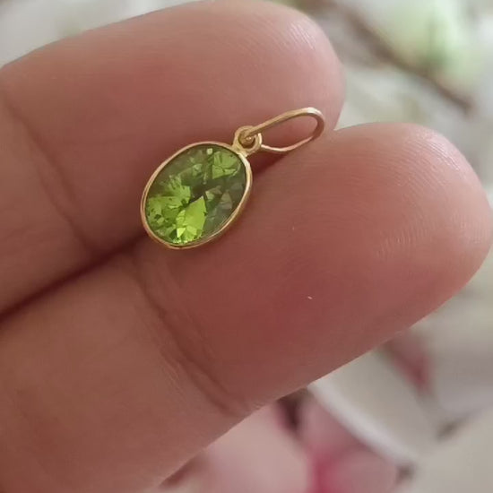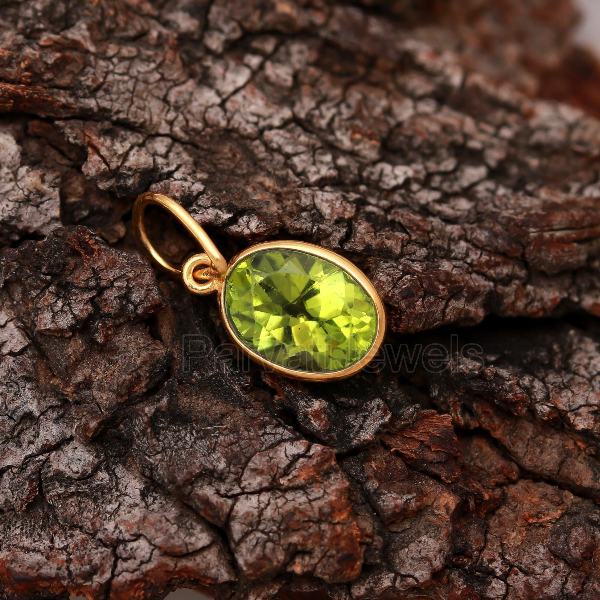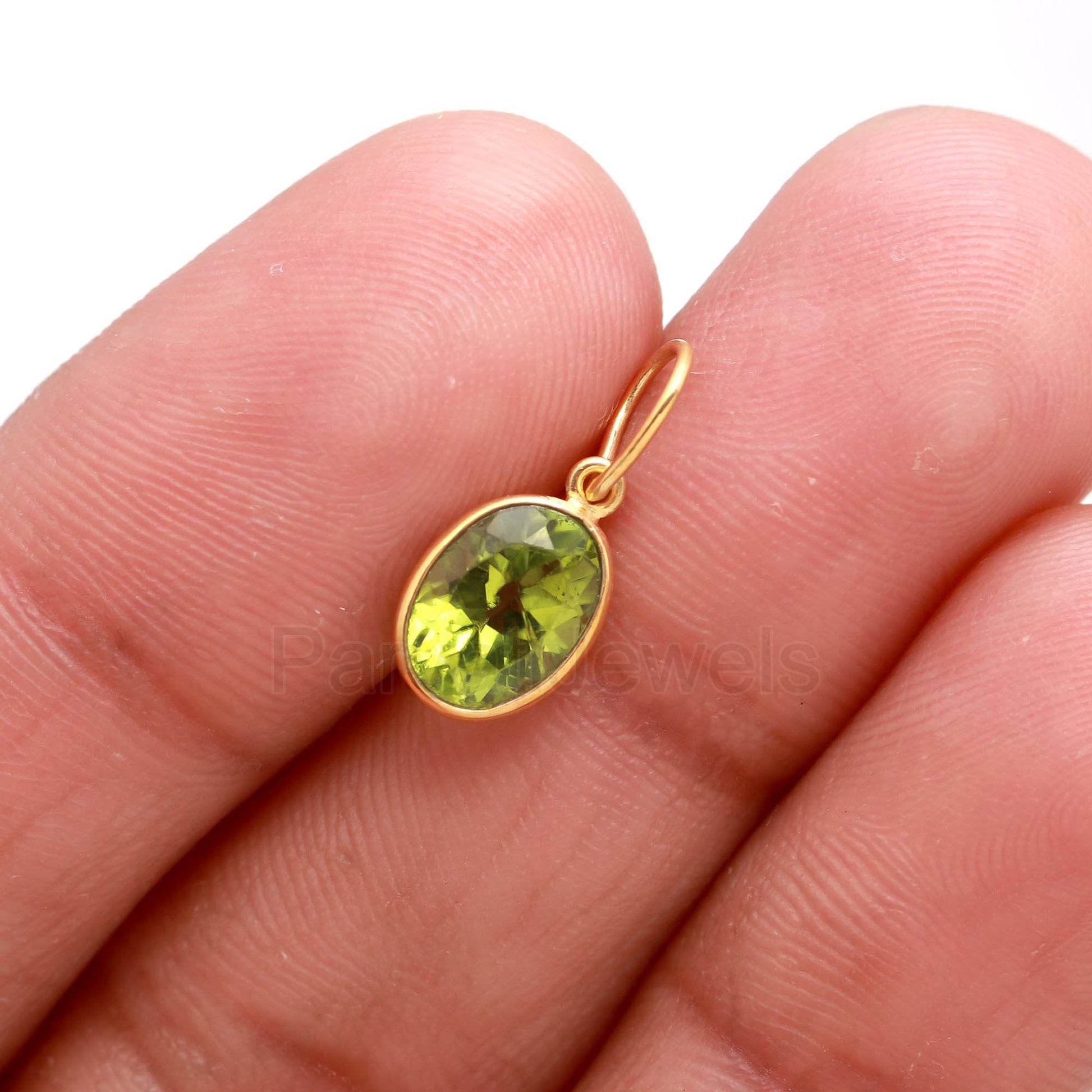 Natural Peridot Cut Charm, 18k Solid Gold Charm, AA Peridot Oval Charm Pendant, Gold Charm, Charm Pendant, Handmade Gold Charm, Gift For Her