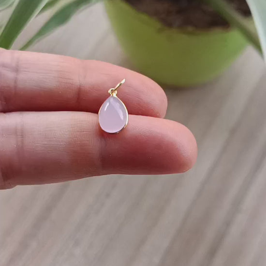 Natural Pink Chalcedony Solid Gold 18K Charm, 18k Solid Gold Charm, Tear Drop Shape Chalcedony Gold Charm Pendant, Handmade Charm For Gifting