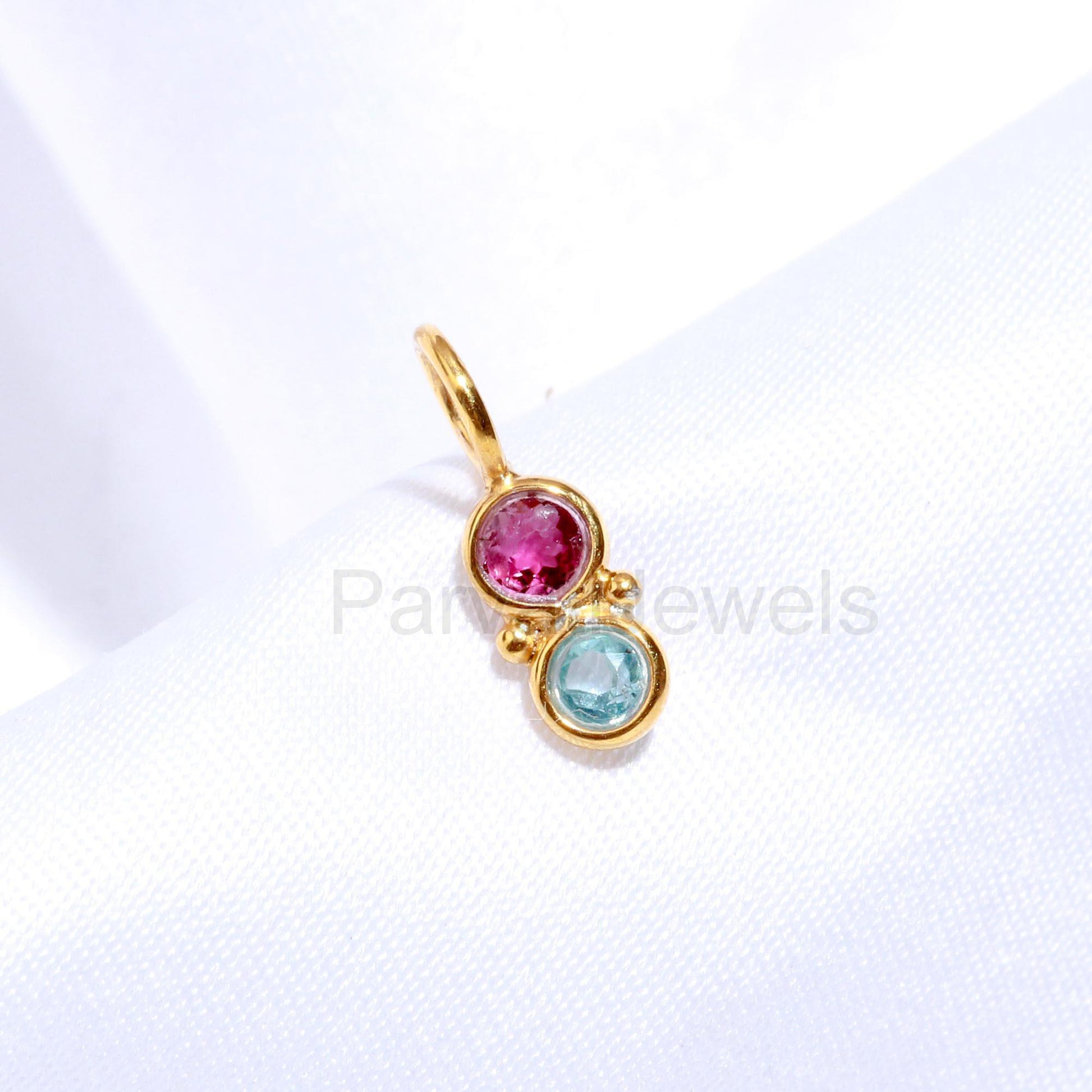 Natural Pink Tourmaline With Topaz Charm, 18k Solid Gold Charm, Tourmaline Gold Pendant, Gold Charm, Topaz Pendant, Handmade Gold Charm,