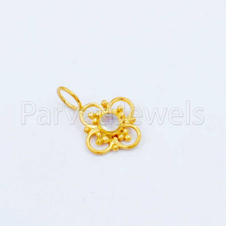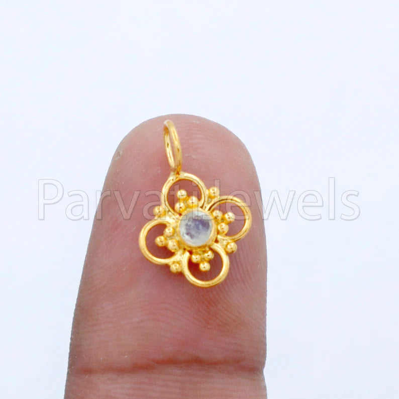 Natural Rainbow Moonstone Charm, 18k Solid Gold Charm, Handmade Gold Charm, Designer Charm Pendant, Charms Necklace, Rainbow Moonstone Charm