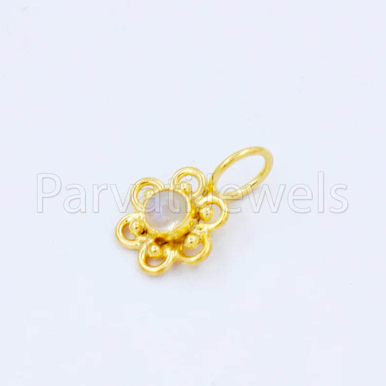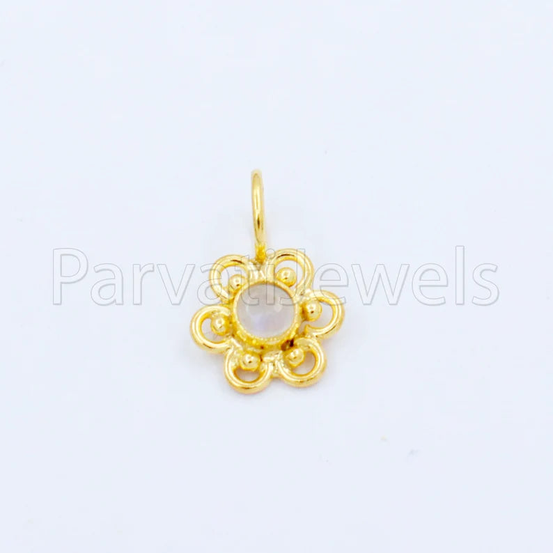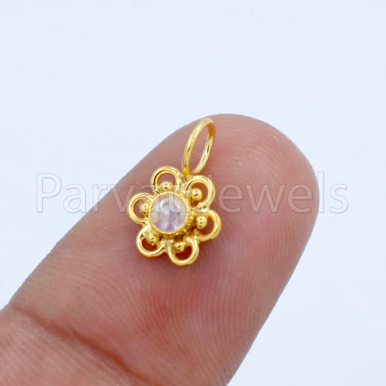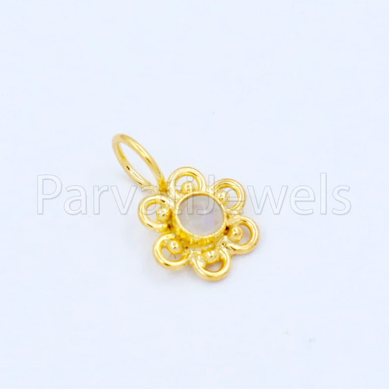 Natural Rainbow Moonstone Charm, 18k Solid Gold Charm, Handmade Gold Charm, Designer Charm Pendant, Charms Necklace, Rainbow Moonstone Charm