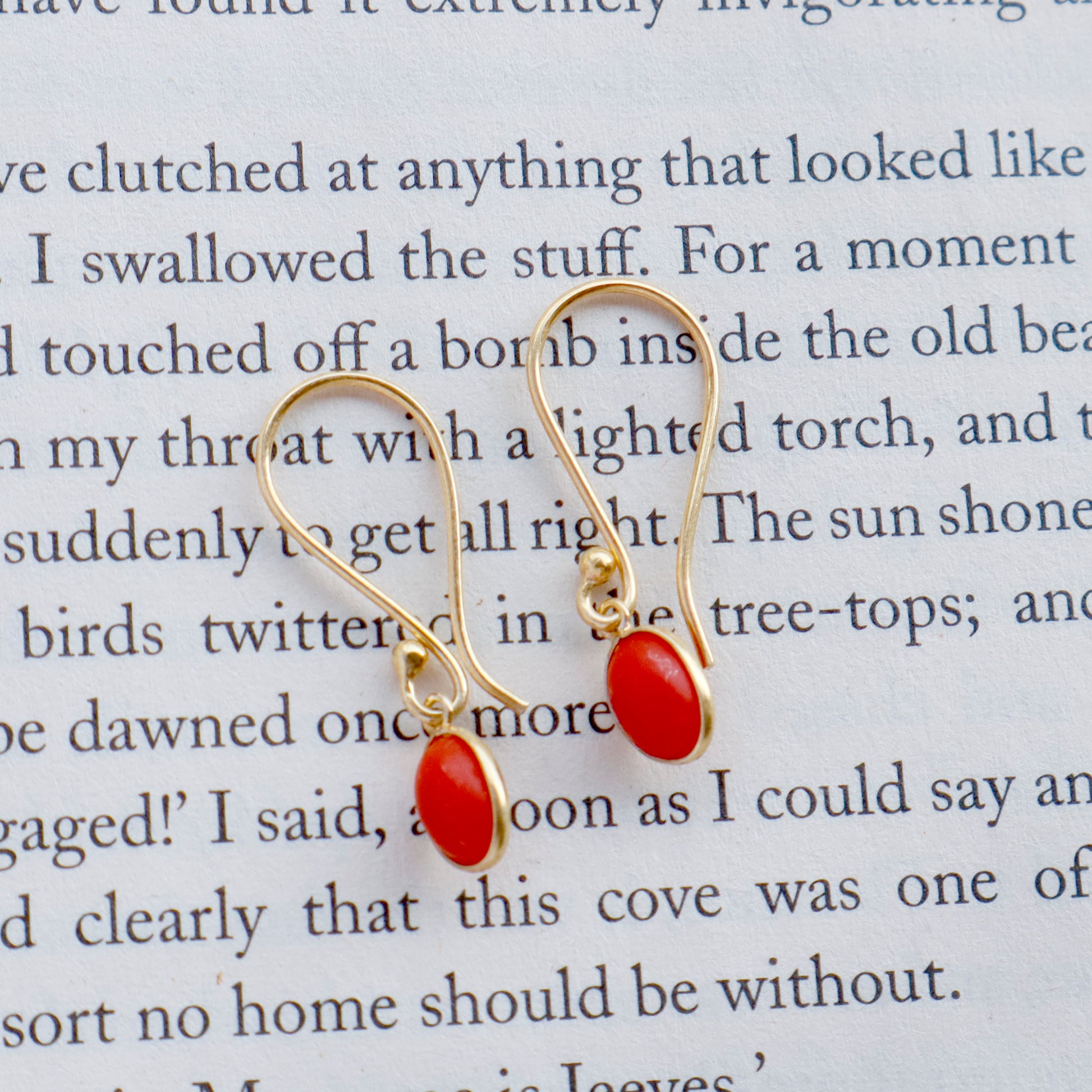 Natural Red Coral Earring, Red Coral Dangle Earring, Solid 18K Gold Earring, Handmade Gold Earring, Minimalist Dangle Earring, Gift for Her