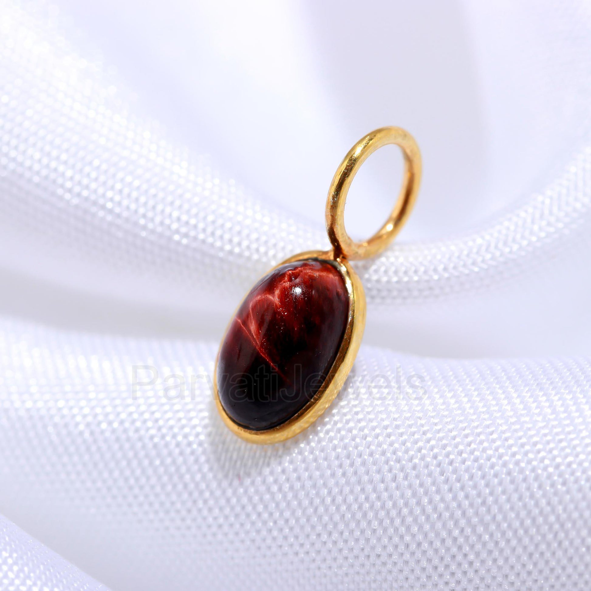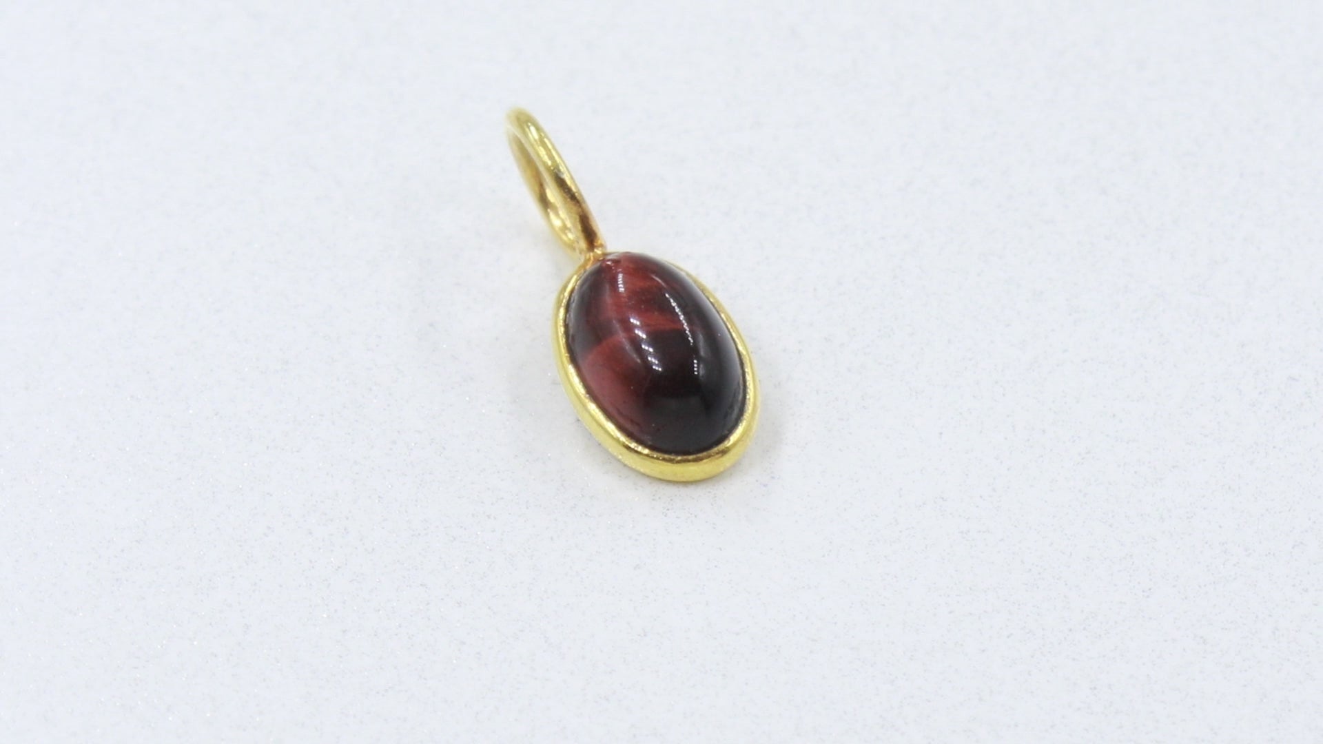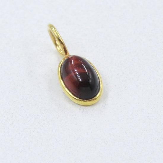 Natural Red Tiger's Eye Oval Charm, Solid 18K Gold Charm Pendant, Handmade Gold Charm, Tiger's Eye Dainty Charm, Minimalist Charm, SOLID 18K,Gift for her