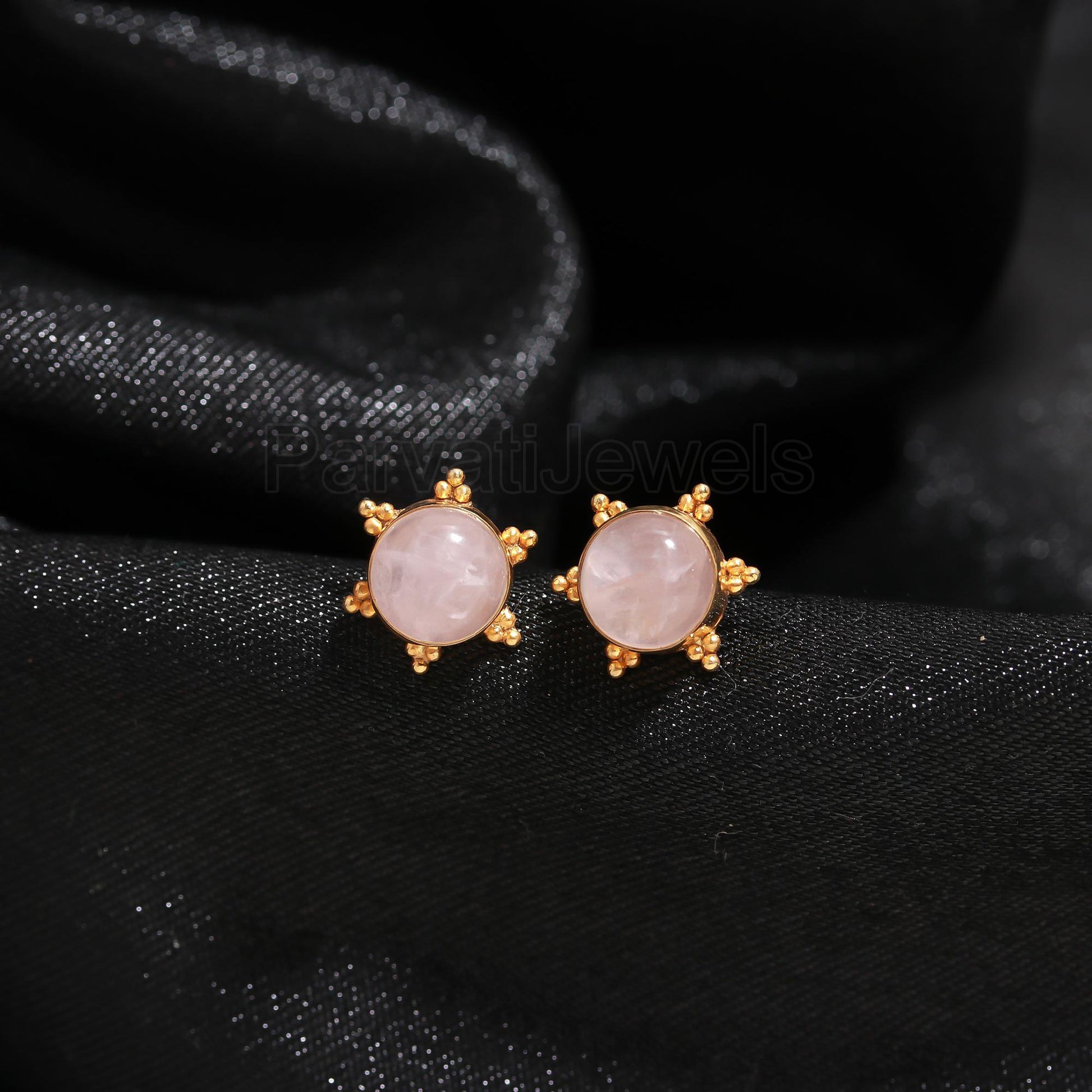 Natural Rose Quartz Stud Earrings, Solid 14k Gold Earrings, Rose Quartz Gold Earrings, Gold Stud Earrings, Handmade Gold Earrings,