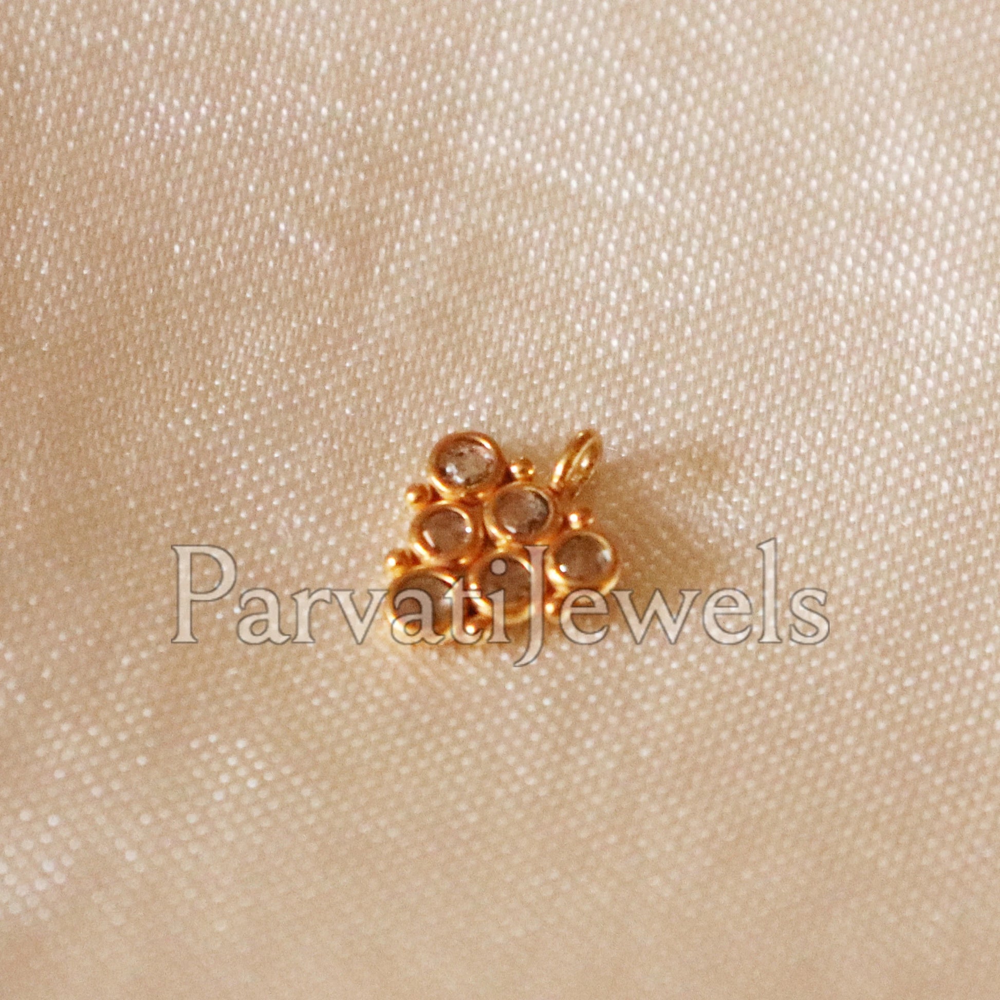 Thank you for coming in! Spectacular handmade 18k Solid Gold champagne diamond charm that is on the cutting edge of fashion. The diamonds are very sparkly with old rose cut rather than modern brilliant cut, which gives it a very classy and unique look. The Diamonds are 100% natural, with no treatment of any kind. Petite and intricate! It looks much much nicer in person!