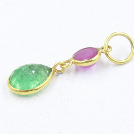 Natural Ruby Emerald Charm, Solid 18k Gold Charm, Ruby Charm Pendant, Emerald Gold Charm Pendant, July Birthday Charm, Handmade Gold Charm,