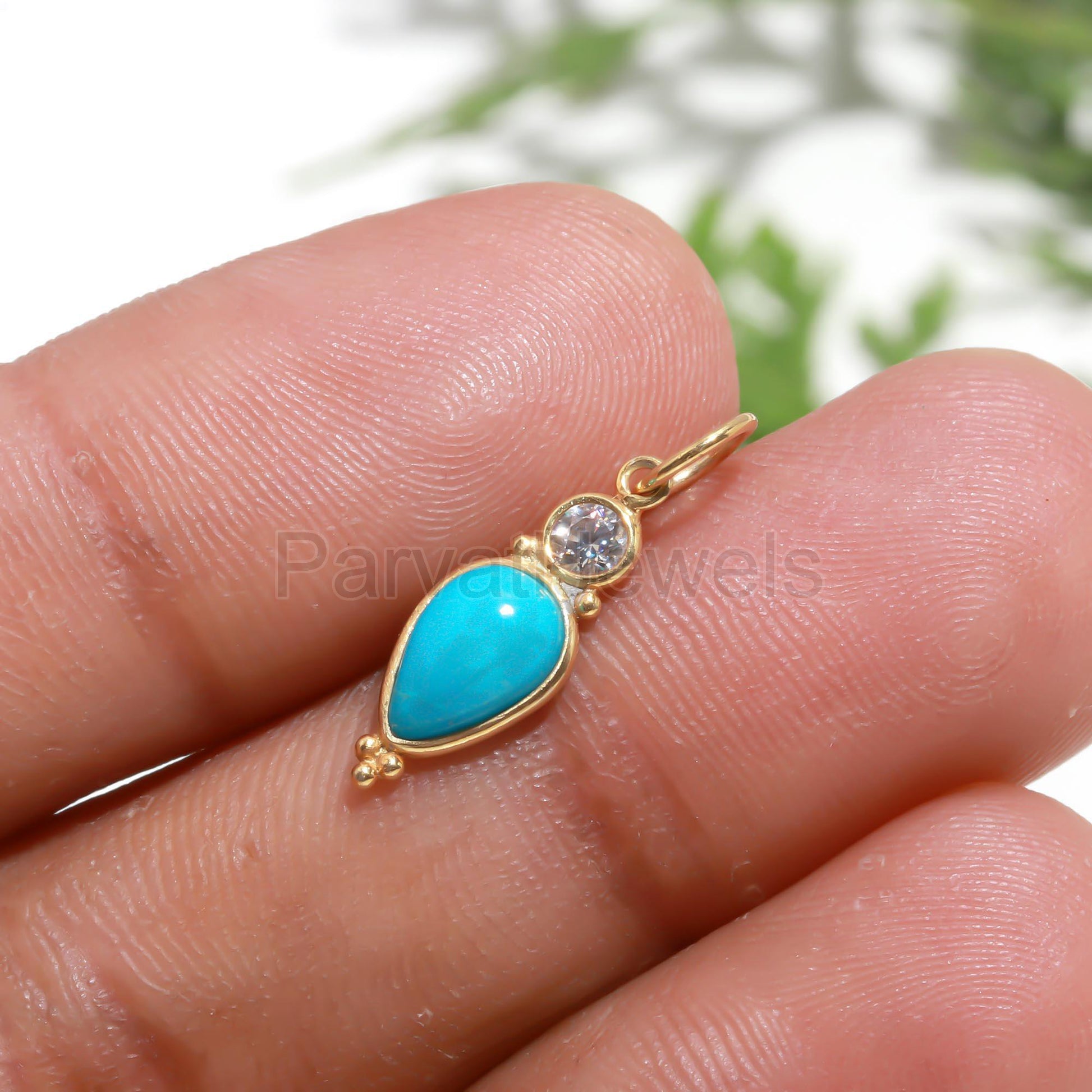 Natural Sleeping Beauty Turquoise With Moissanite Charm, 18K gold charm pendant, Moissanite Charm, Handmade Gold Charm, Turquoise Gold Charm