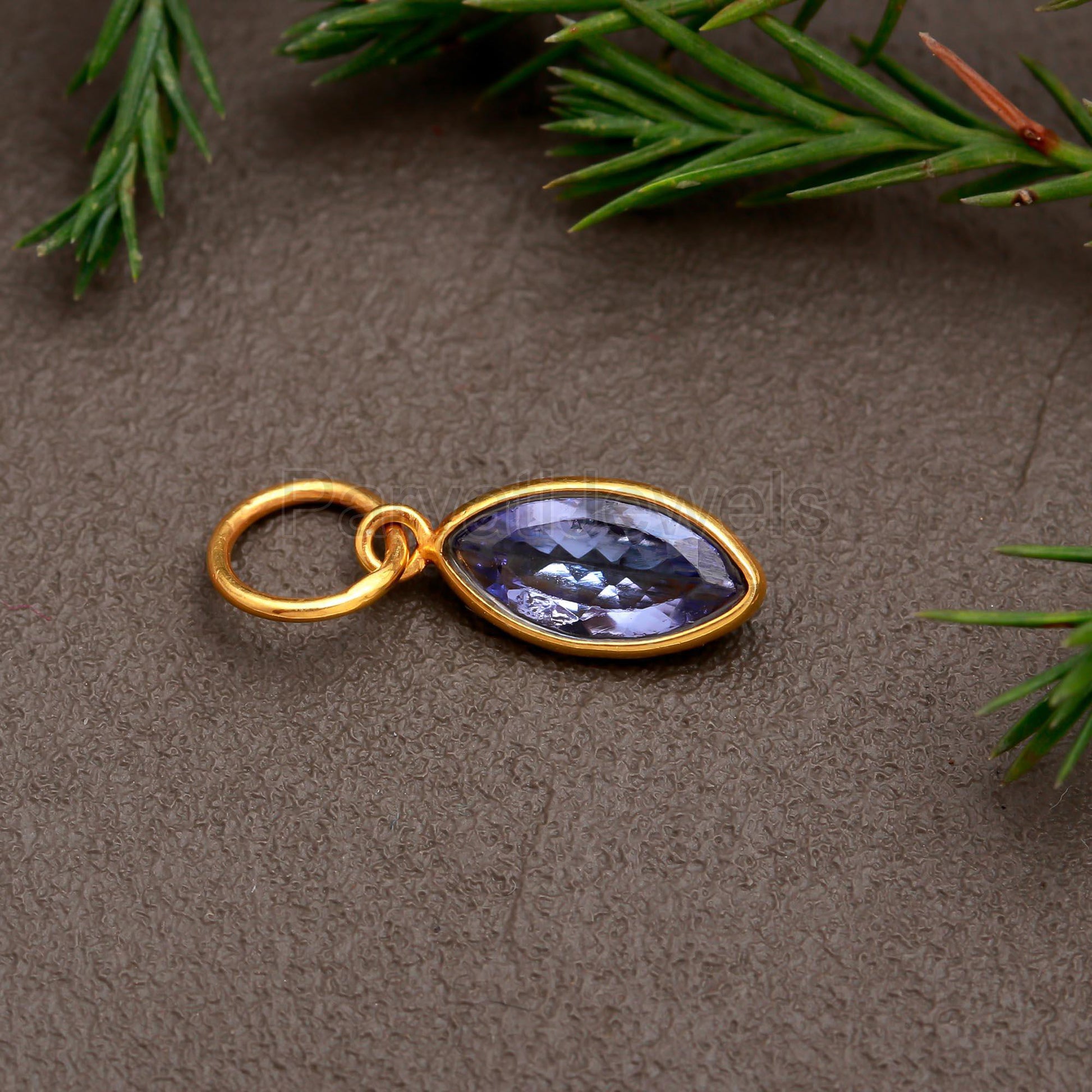 Natural Tanzanite Charm, Solid 18k Gold Charm, Handmade Gold Charm, December Birthstone Charm, Tanzanite Charm, Minimalist Charm Pendant, Gift for her,