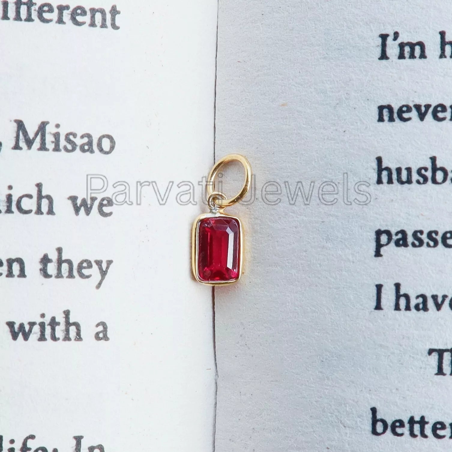 Refined Lab-Created Ruby Charm, 18k Solid Gold Charm, Gold Jewelry, Gold Charm, Charm Necklace, Handmade Ruby Charm, Gift for Her