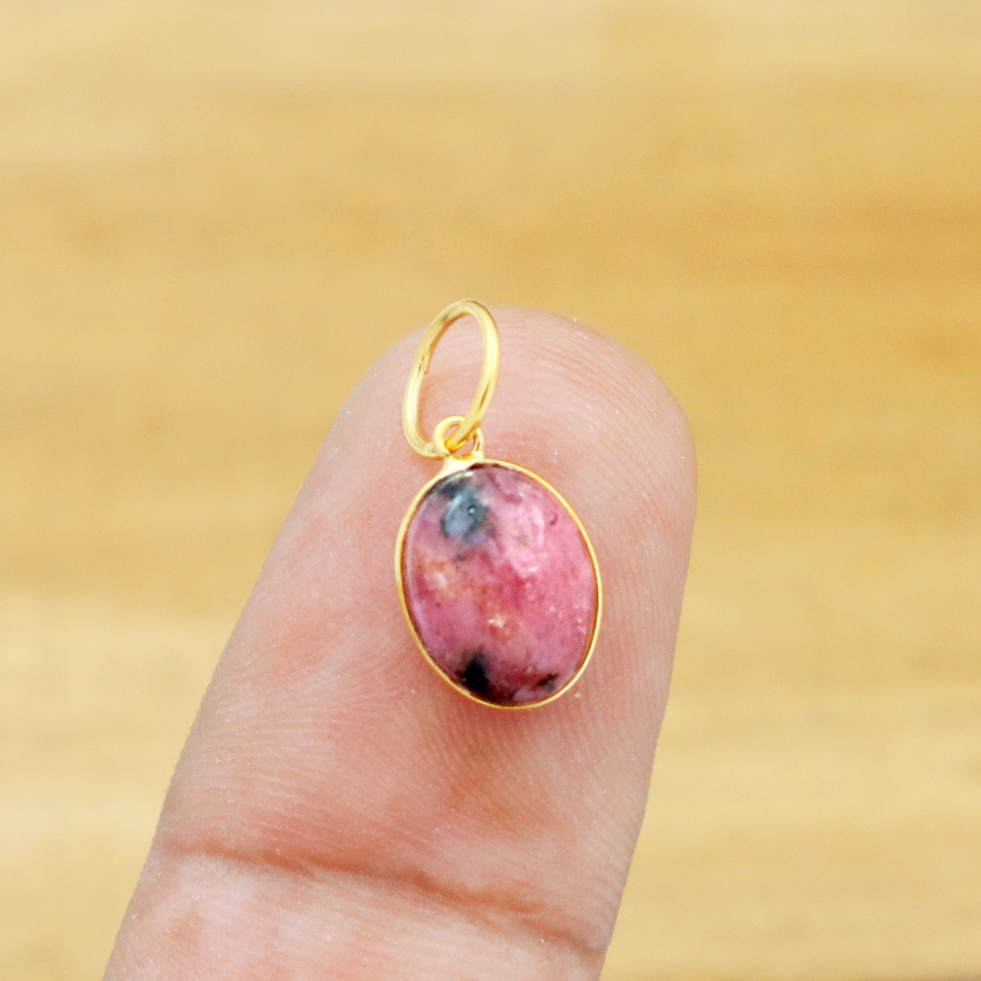 Rhodonite Charm, 18k Solid Gold Charm, Natural Rhodonite Charm, Gold Charm, Charm Pendant, Charm Necklace, Handmade Gold Charms