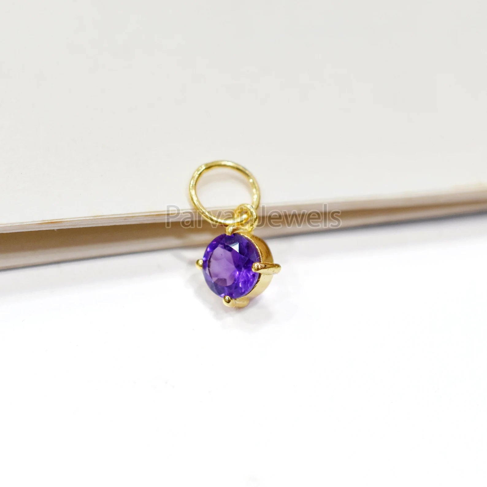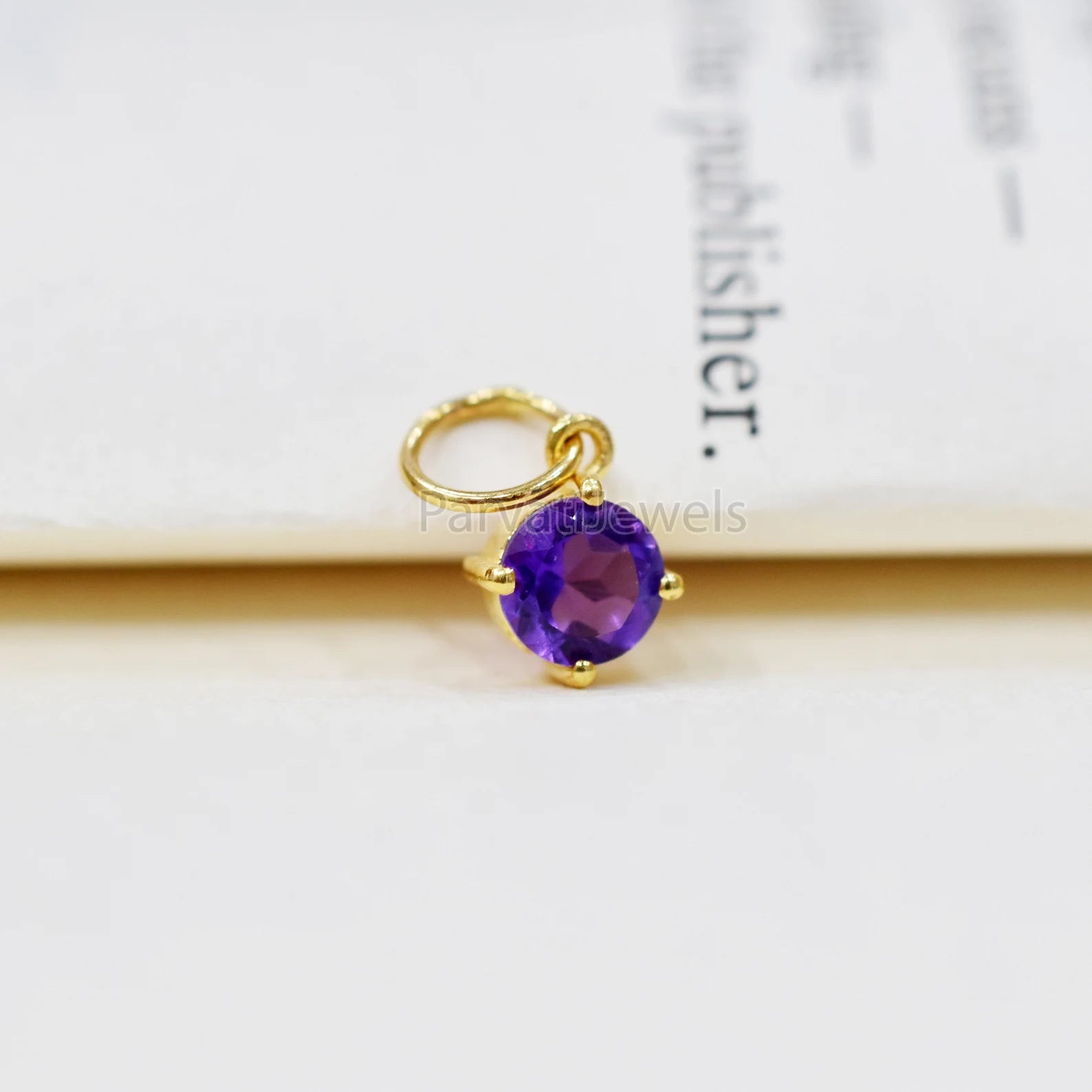 Natural African Amethyst Charm, 18k Solid Gold Charm, Prong Setting Jewelry, Gold Charm, Charm Pendant, Handmade Charm, February Birthstone