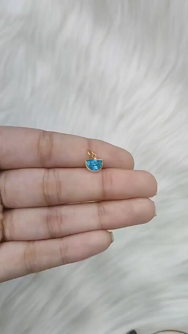 Solid Gold Blue Topaz Square Shape Charm Pendant, 18K Solid Gold Blue Topaz Charm, Minimalist Charm Pendant, Gold Charm, Gift Jewelry (Copy)